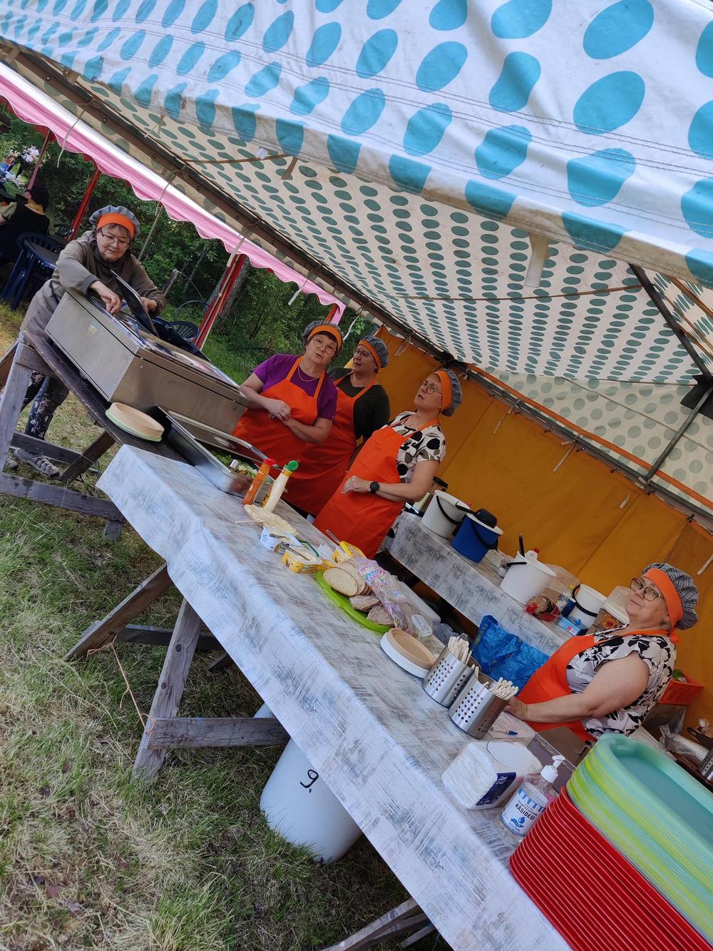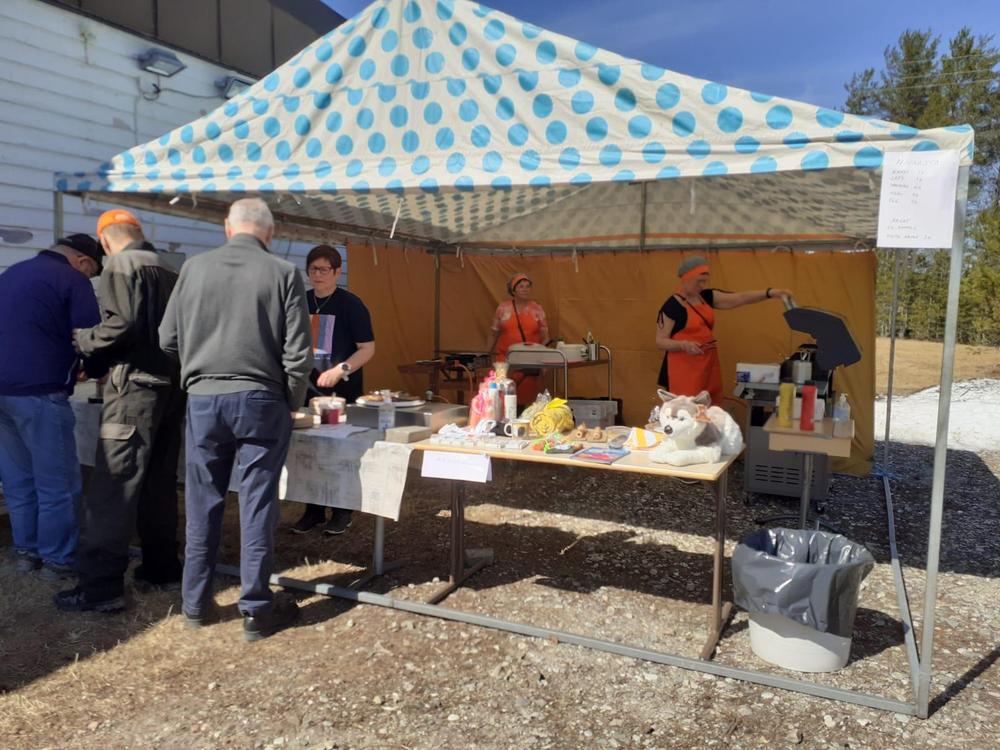 Meidän seuran iloiset talkoolaiset paisteli maukkaat letut ja makkarat, niin mikäs siinä oli nautti pöhinöistä. Myynnissä oli myös kakkuja ja piirakoita, niin vatsan täytettä sai myös kotimatkalle.